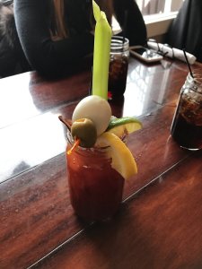 OMG this is amazing!!! They put celery, olives, limes, and a hard boiled egg AND bacon as garnish!!!